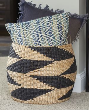 Decor Basket 16x18H Natural/Blk Wicker Handles