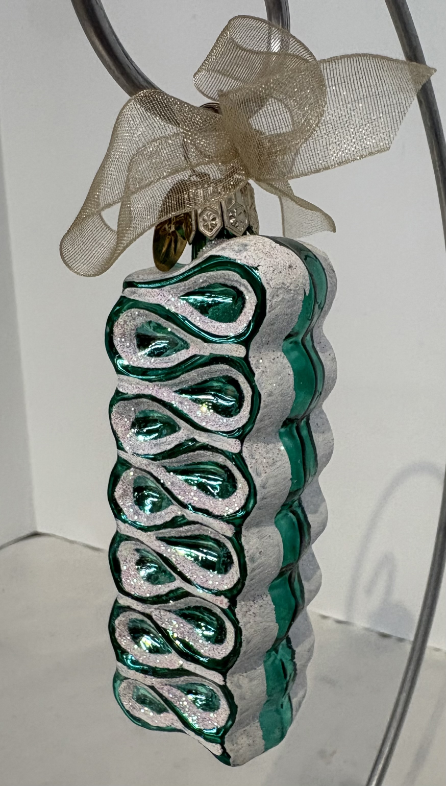 Decor XMas Seasonal Christopher Radko Medium GrnWh Ribbon Candy