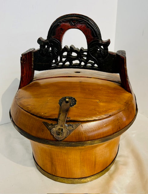 Decor WoodChinese WeddingBasket 10x13x13H BrnBzRd