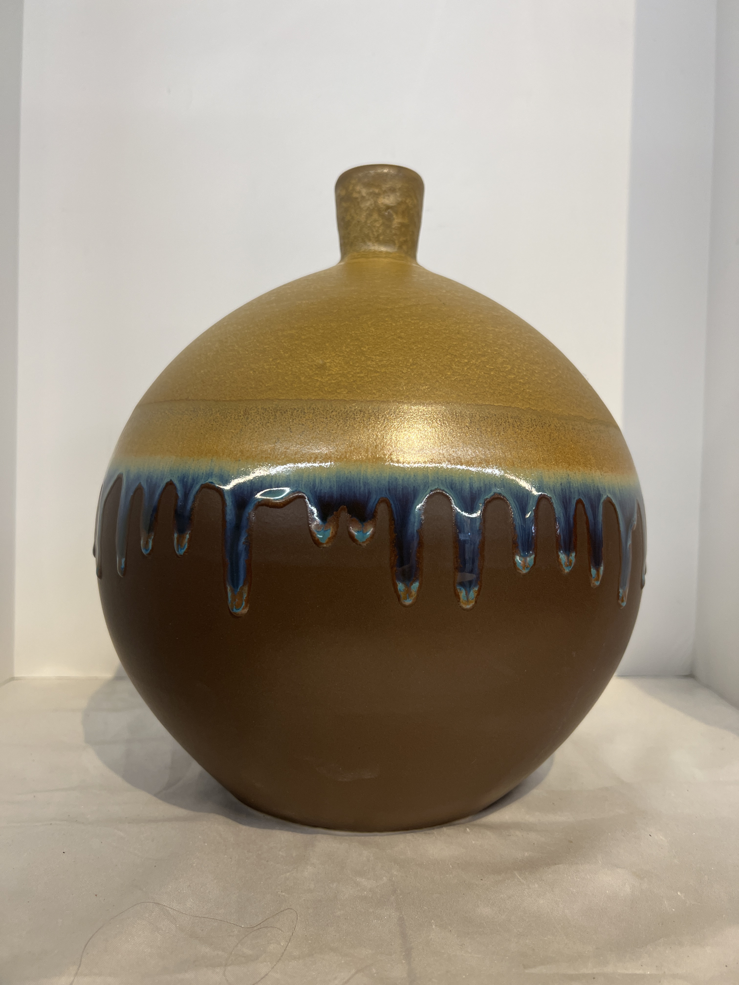 Decor Pottery 10x13H TnBluBrn Pottery Drip