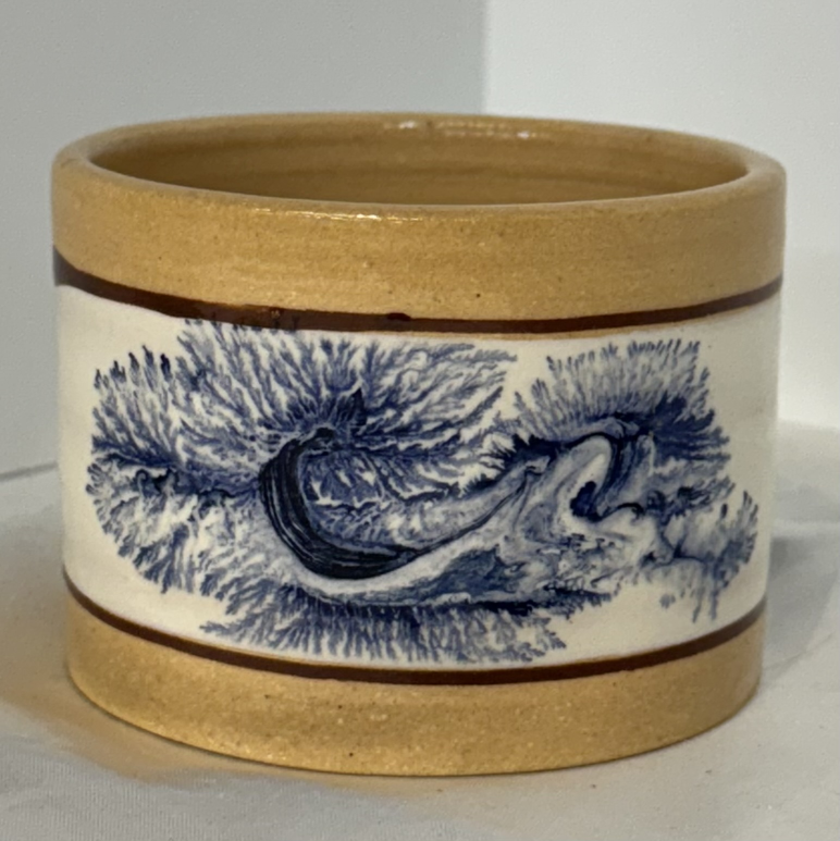 Decor Pottery 3.5x2.5H TanWBlu Pottery Painted
