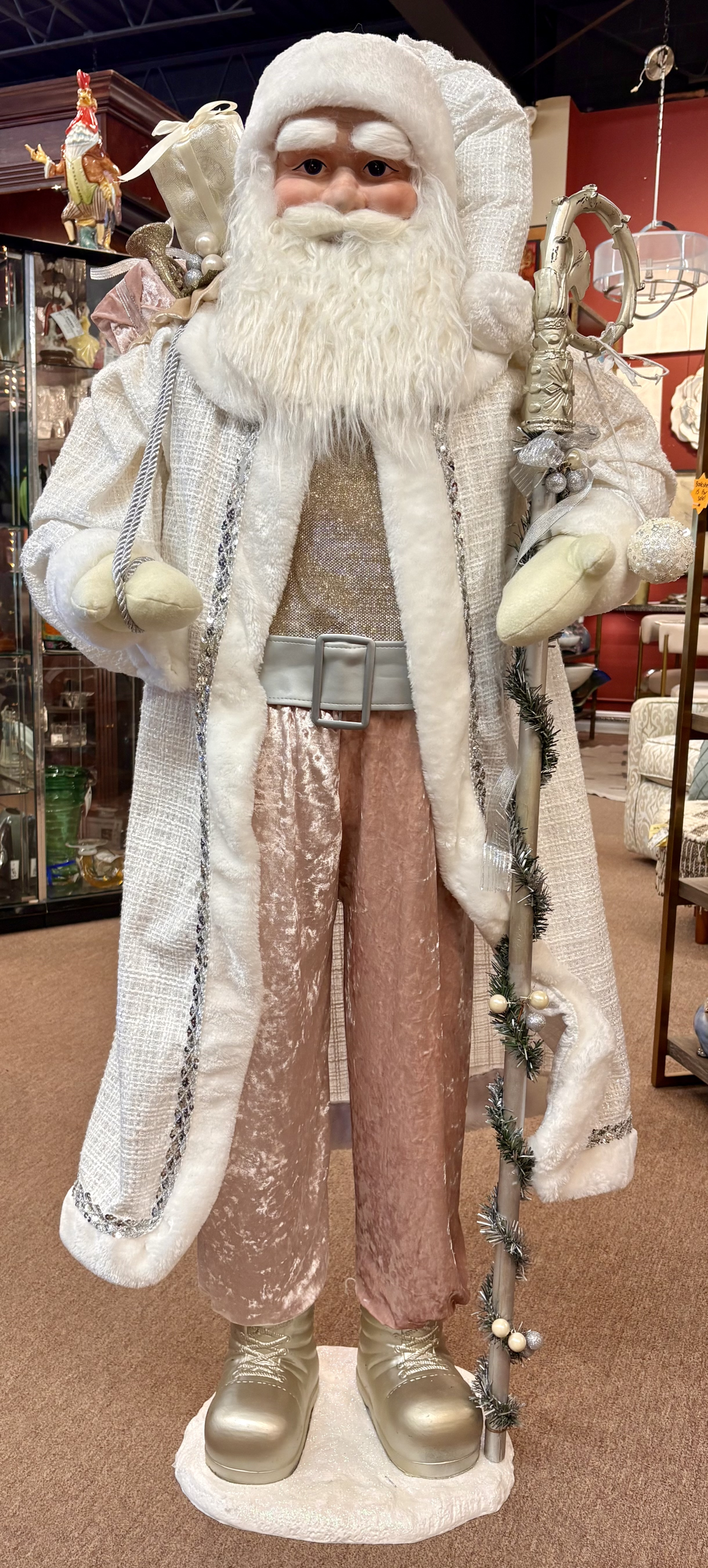 Decor XMas Seasonal 128x13x62H WhSilvPnk Fabric Santa