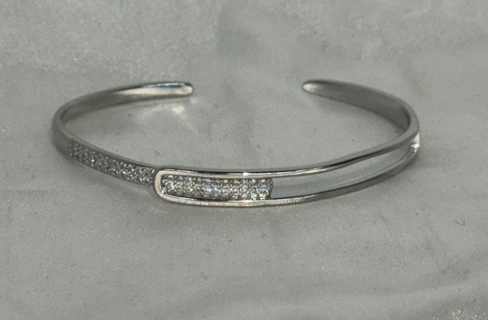 Bracelet 925 CZ Open Bangle 2.5"dia Silver