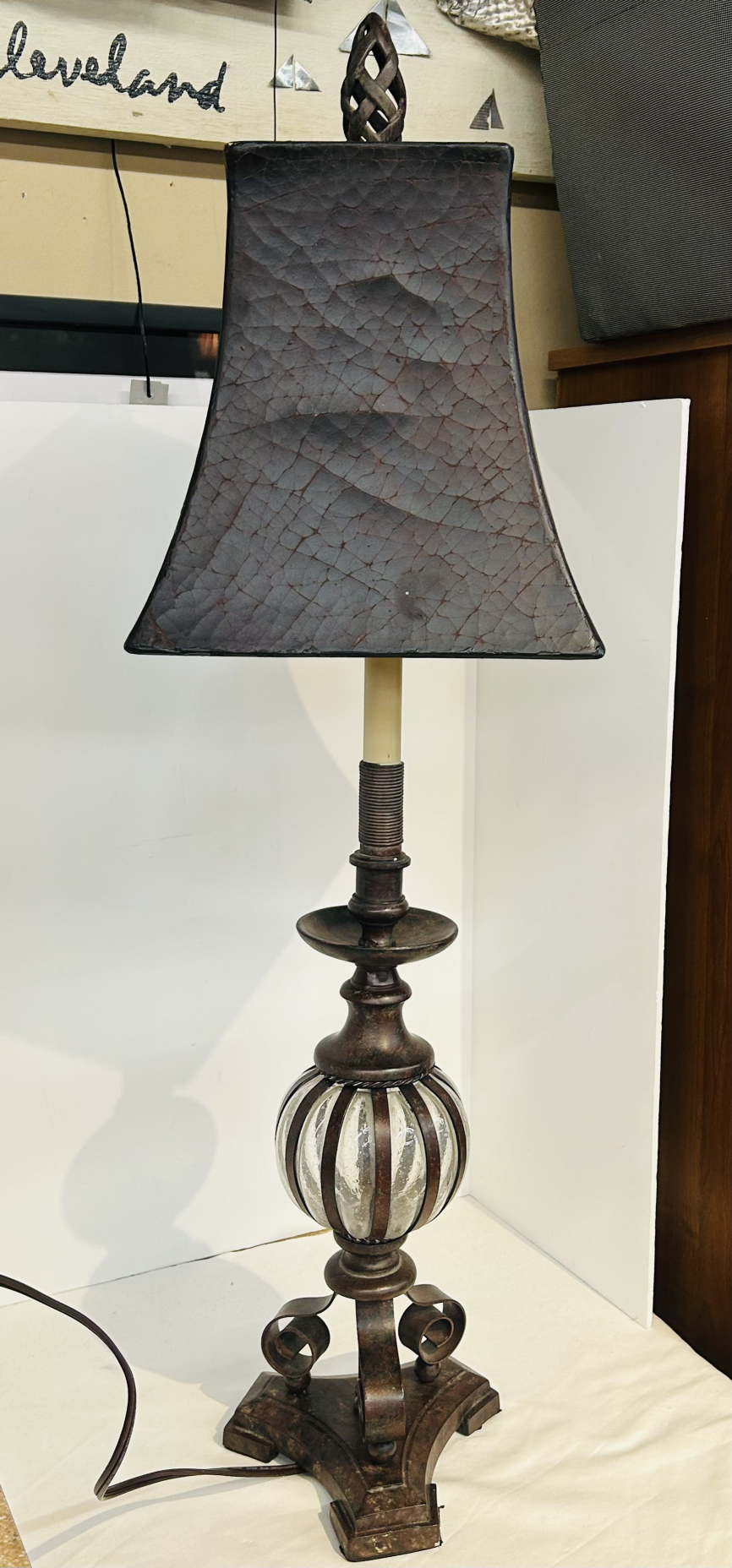 Lighting Lamp 10x36H BrnBlk Iron Glass Rustic