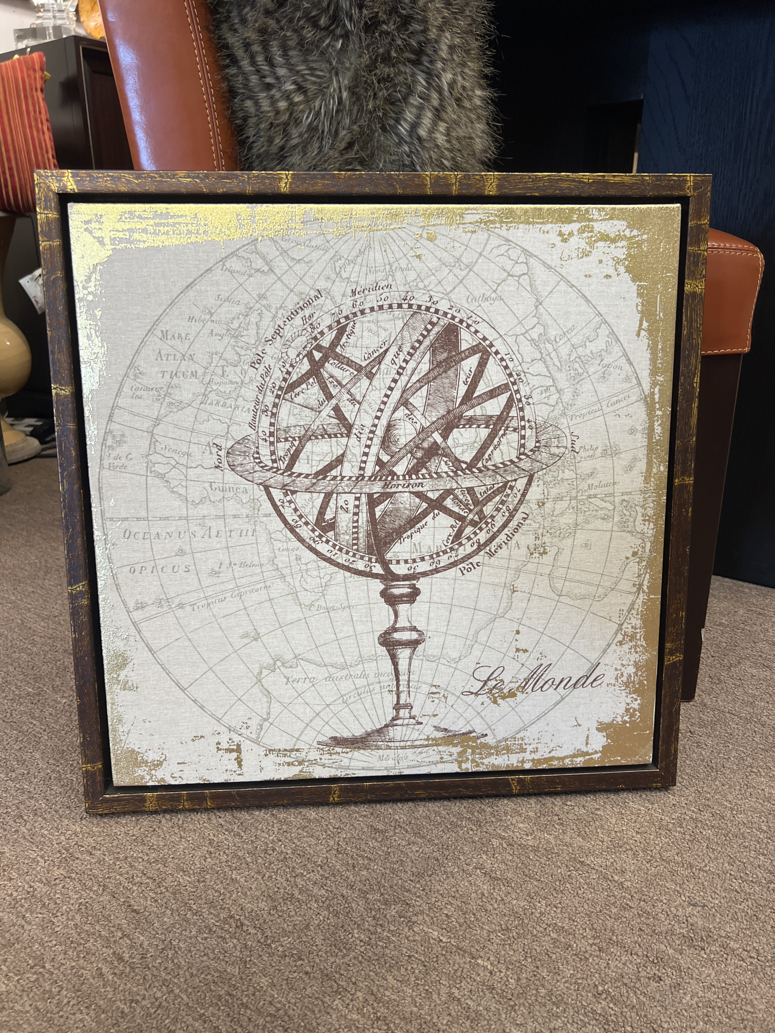 Wall Art Wall Decor Bombay 20x20H BrnCrmGld Canvas & Wood Globe