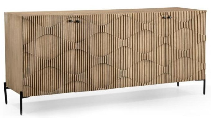 Console Wavy Wood 4 Dr Console 69x18x32 LtBrn