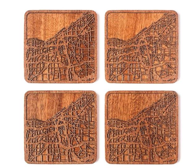 Barware S4 Wood Cle Coasters 4x4H Brown