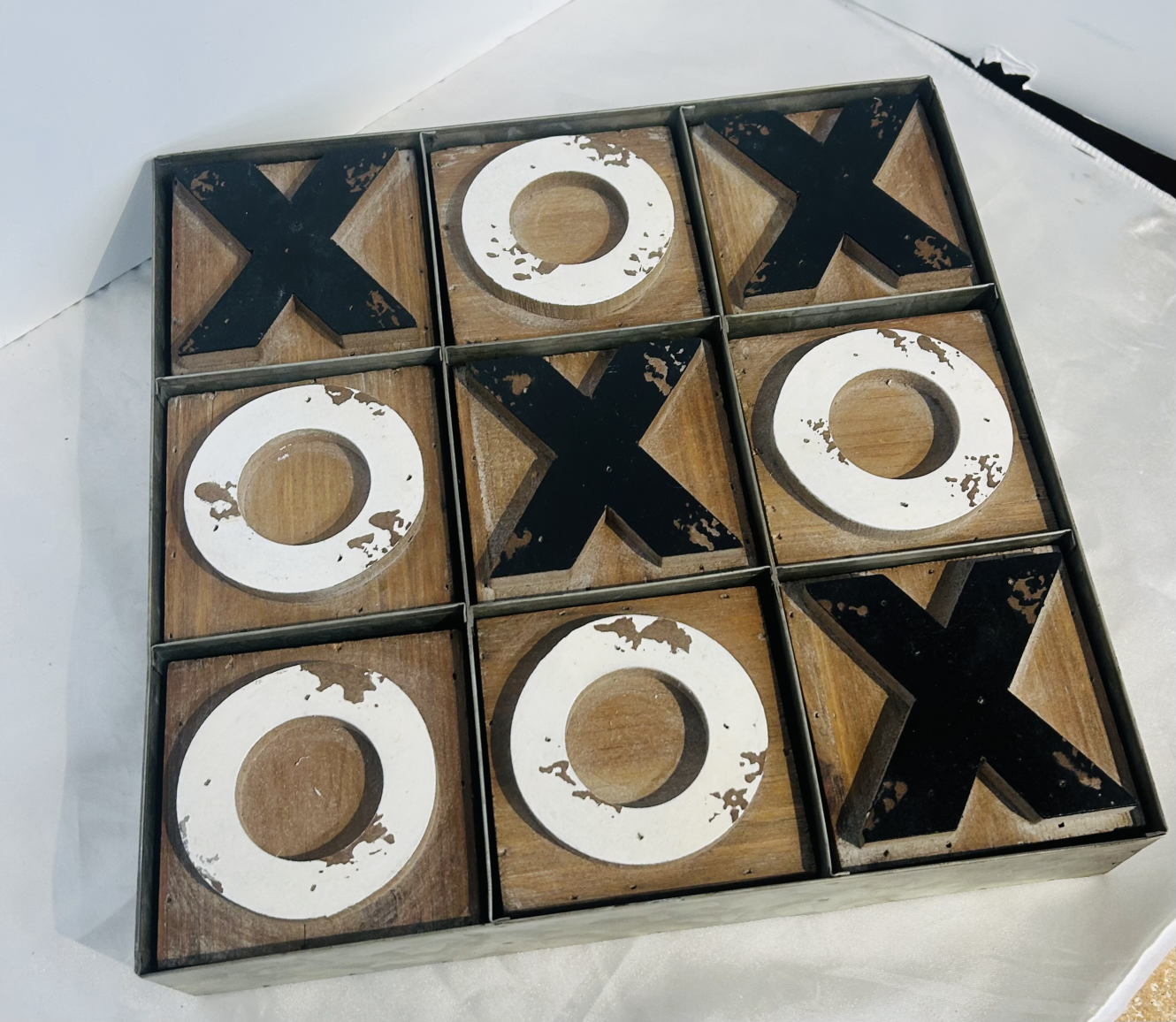 Decor Decor 12x12x2.5H BrnWhBlkGry Wood & Metal Tic Tac Toe