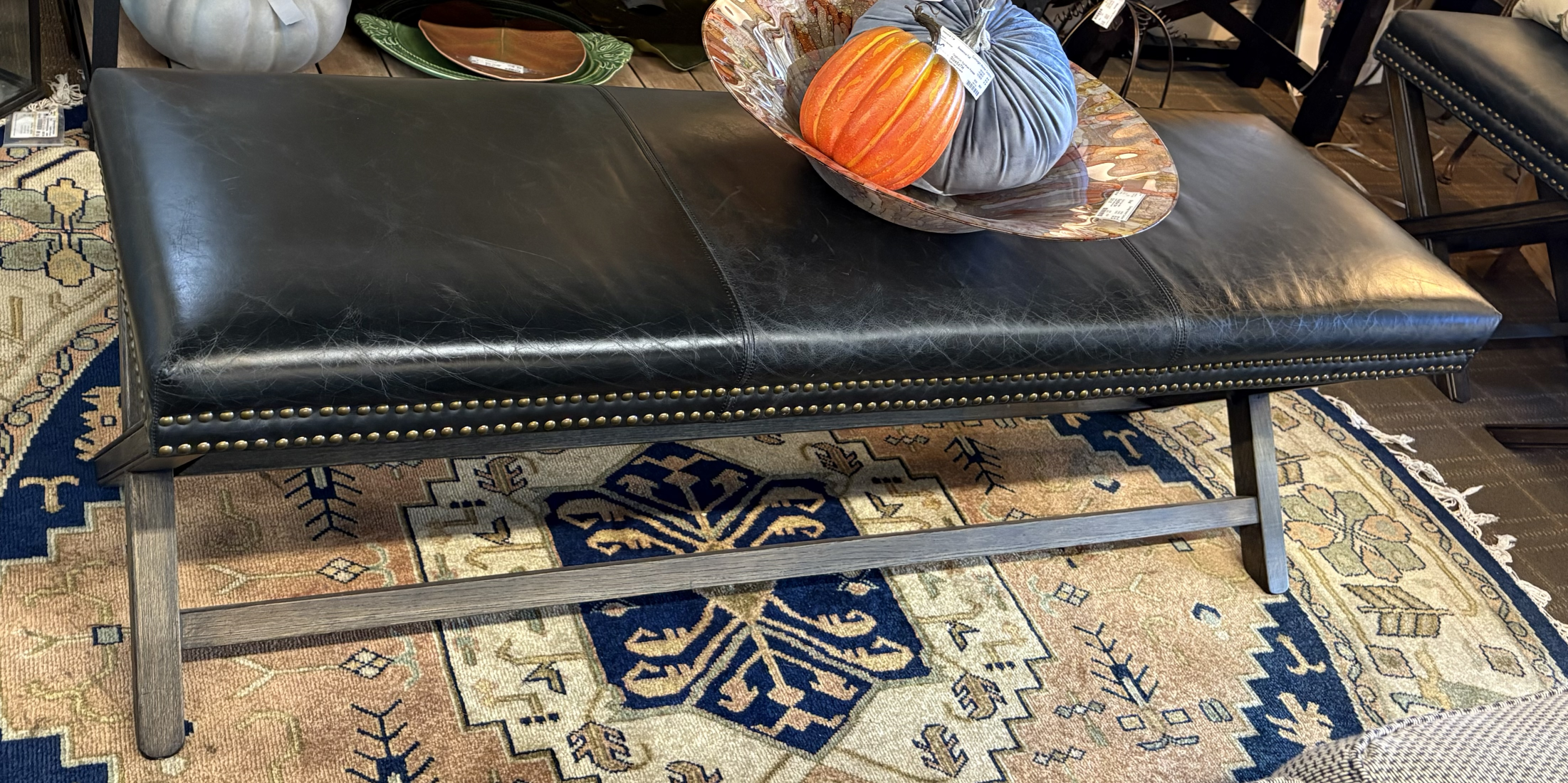Furniture Bench Four Hands 59x17.5x20H BlkBrn Leather