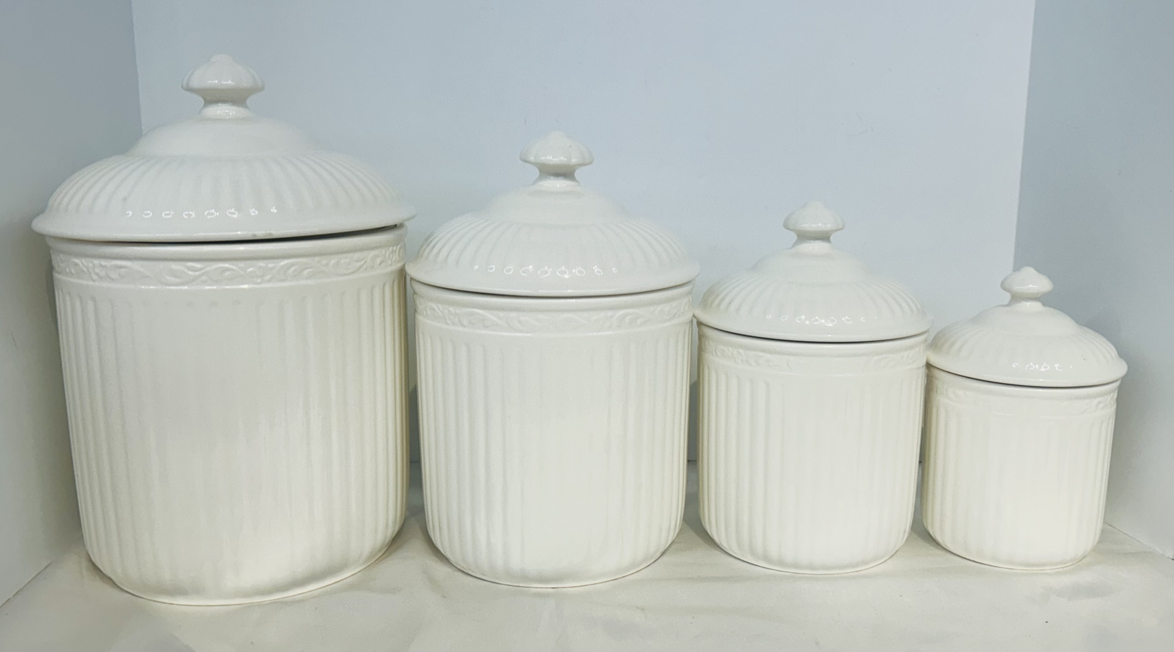 Decor Kitchenware Mikasa 4 Piece WhBlk Ceramic Ribbed