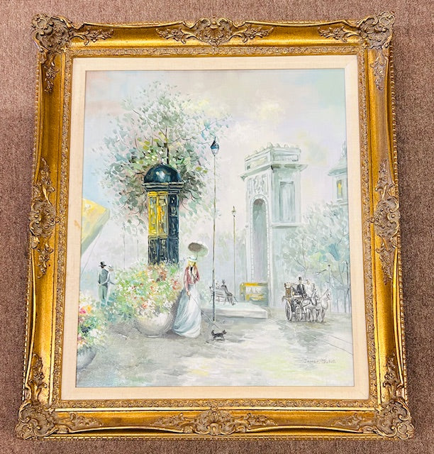 Print JamesJulie LadyParasolOil 27x31H GnBluWY