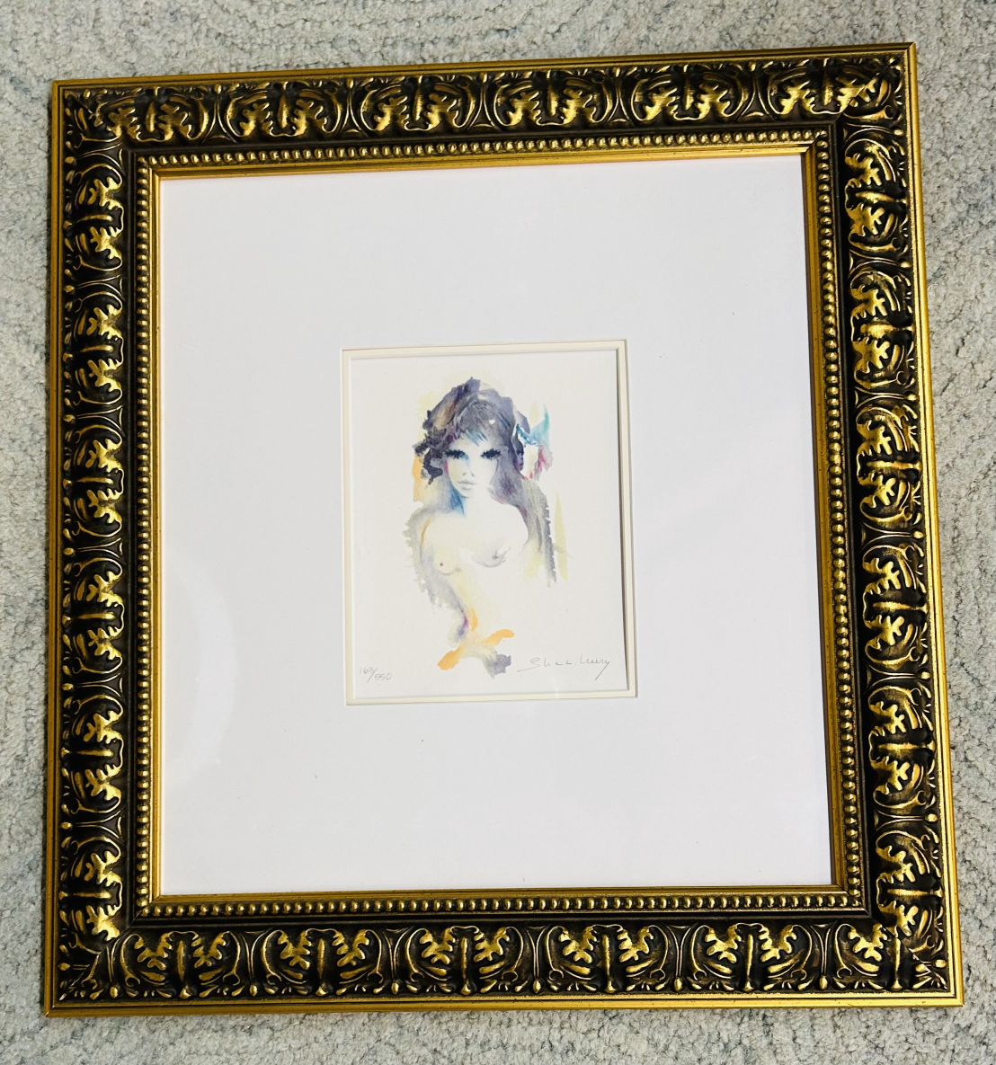 Wall Art Print Shan-Merry 18x20H CrmGryTeal Lithograph Nude