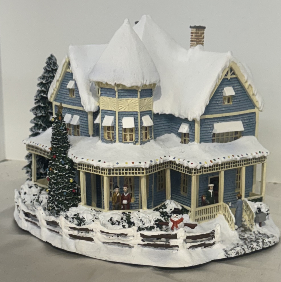 Decor XMas Seasonal Thomas Kinkade 7.5x6H BluWGrnCrm Ceramic Light Up