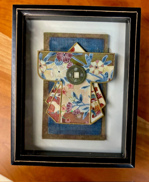 Wall Art Wall Decor 5.5x7H BlkCrBlu Wood Asian