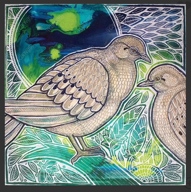 Wall Decor 2 Mourning Doves Canvas 26x26H BluGrnBr