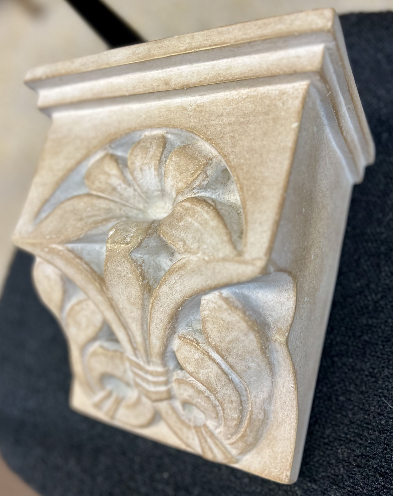 Wall Art Wall Shelf 9x5.5x9H Tan Fiberstone Fleur De Lis