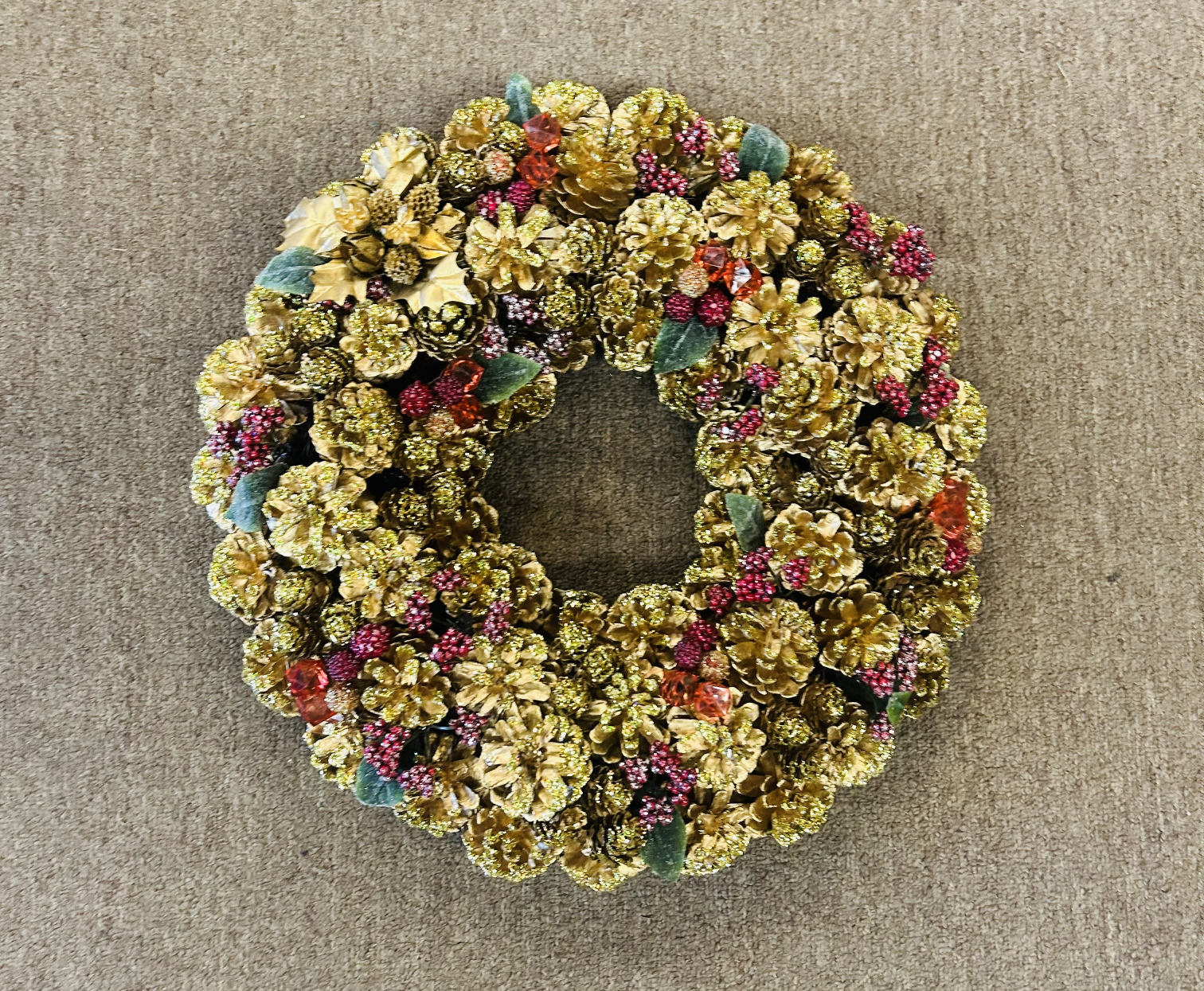 Decor XMas Seasonal 16"Dia GldRdGrn Pinecone Wreath
