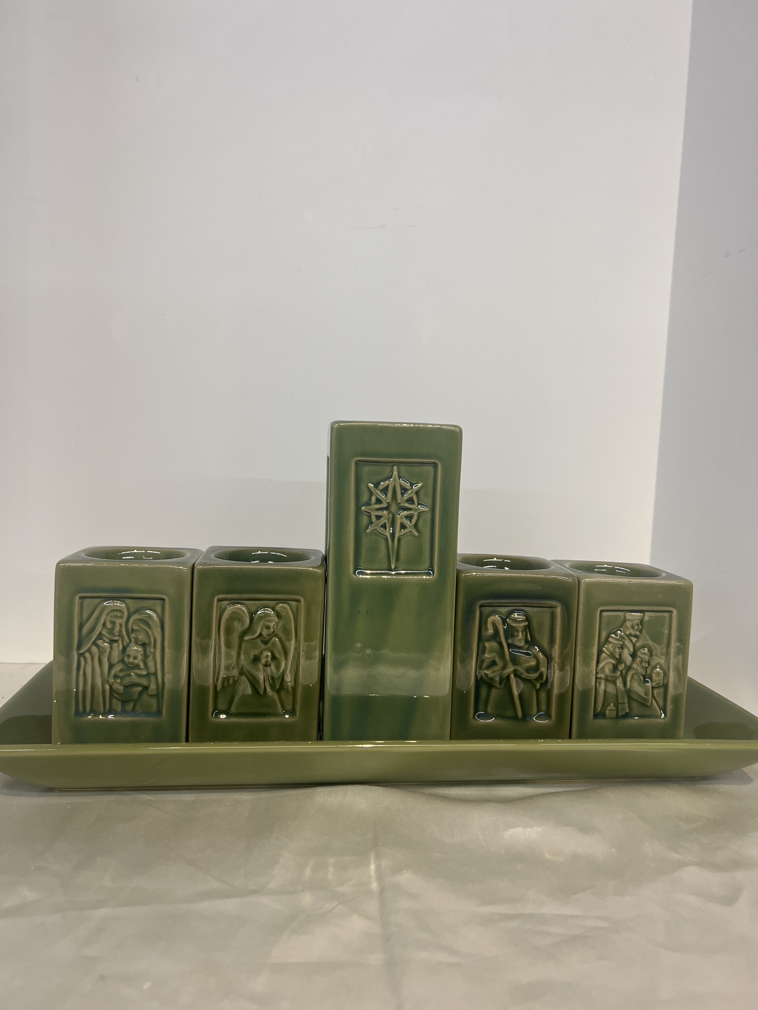 Decor XMas Seasonal 16x8H Green Ceramic Nativity