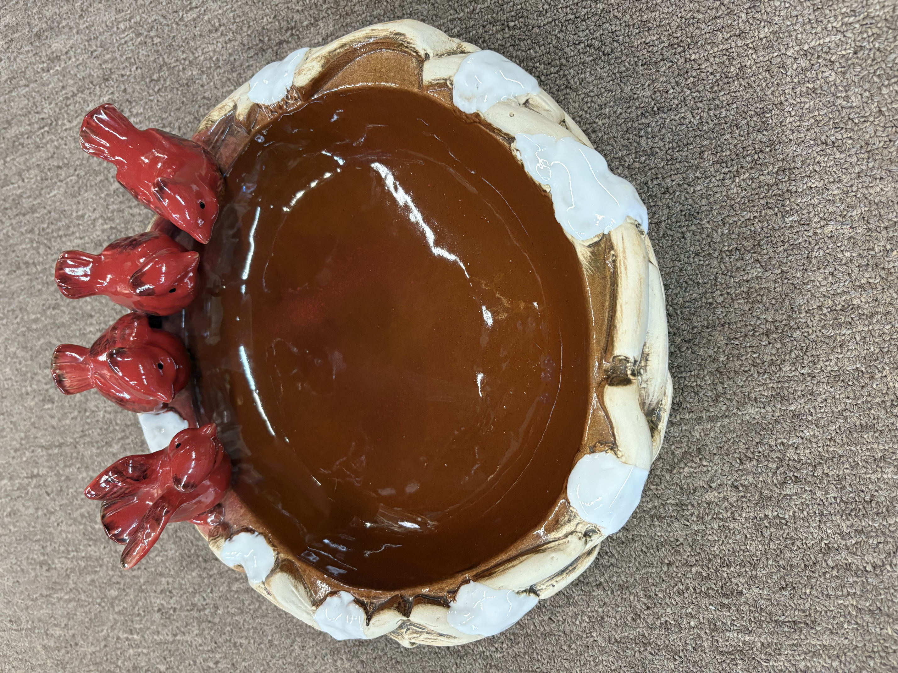 Decor Outdoor 12x4.5H BrnRedWh Ceramic Birds