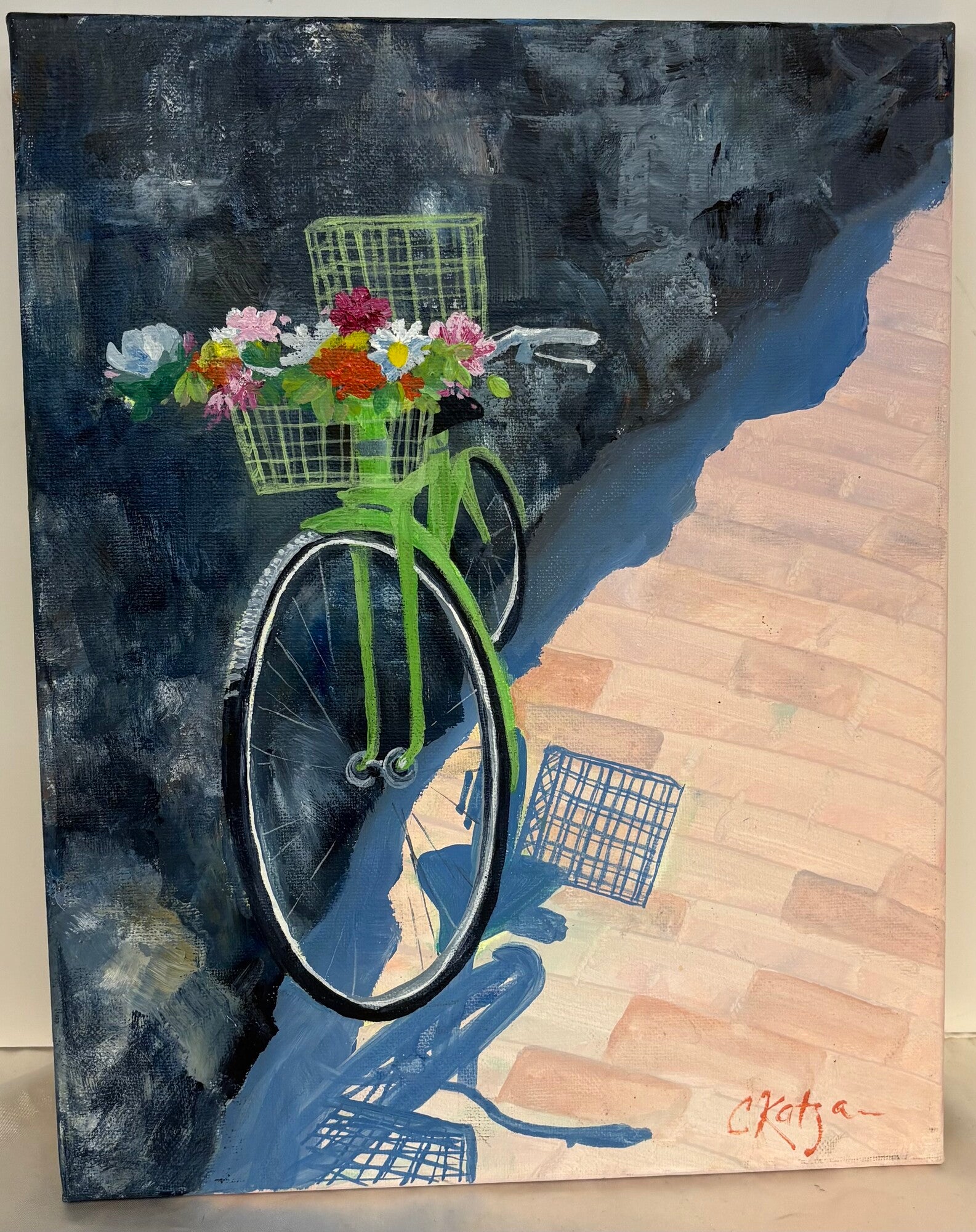 Wall Decor Bicycle Oil On Canvas 11x14H BluPkGrn