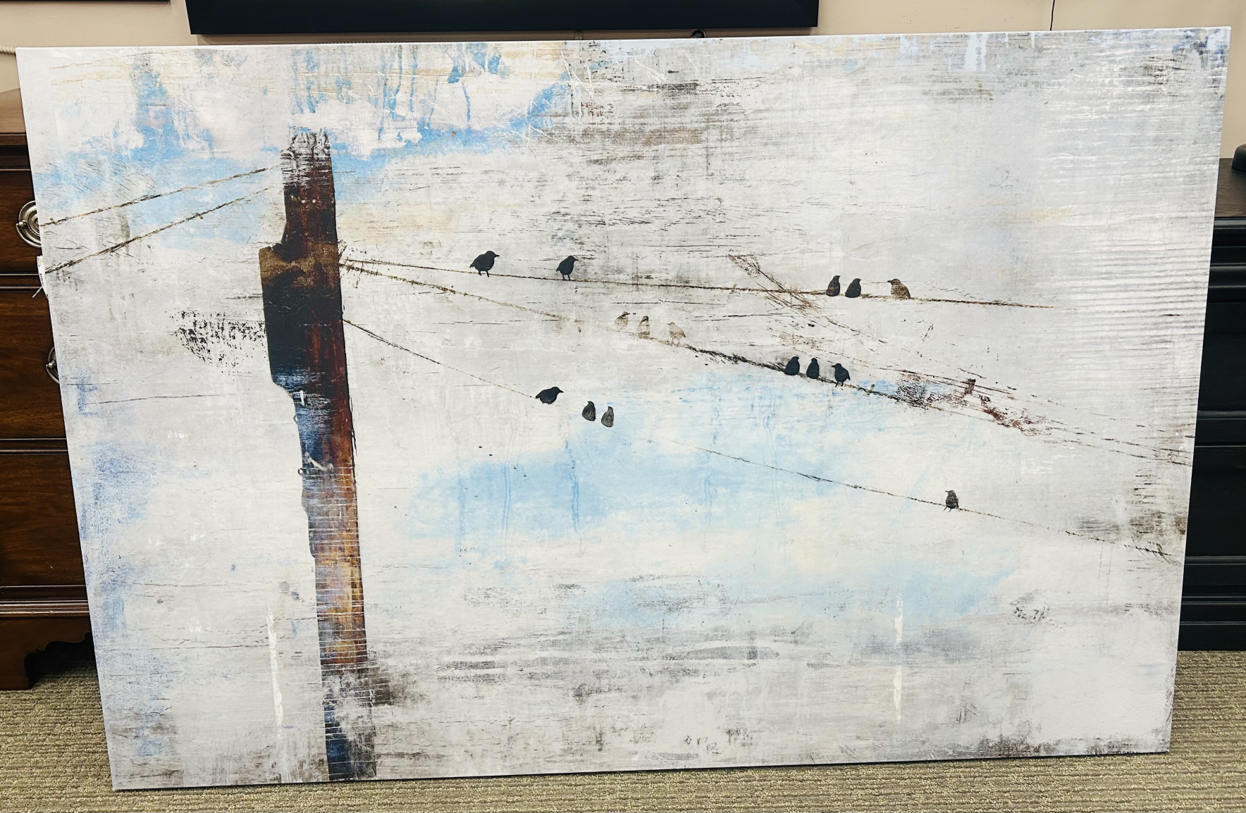 Wall Art Wall Decor 60x40H BluWhGryBrn Canvas Birds on Wire