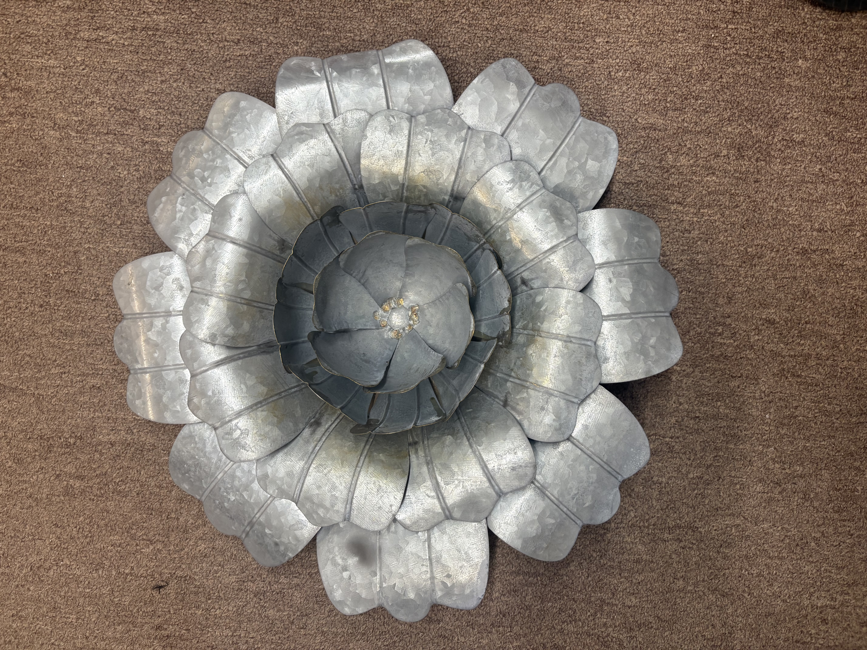 Wall Art Wall Decor 17x17H Silver Galvanized Metal 3D Flower