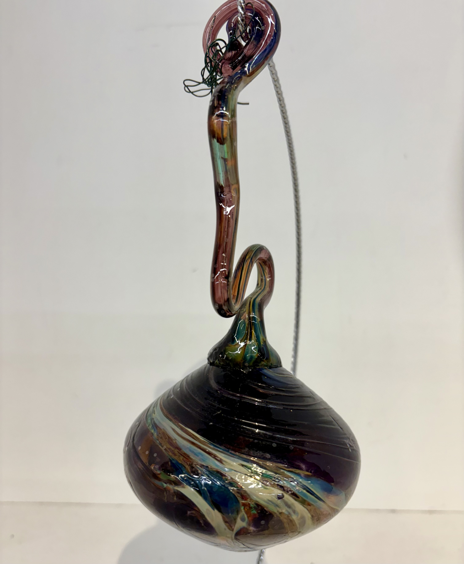 Decor XMas Seasonal Artisan 4x8H PurpGrnBlu Handblown Glass Swirl Circle
