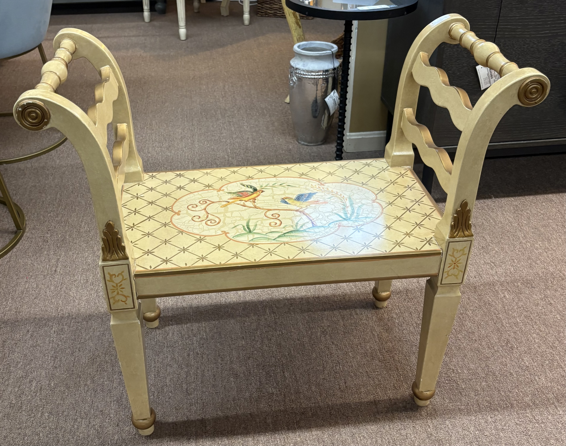 Furniture Bench 32x15x29H YelGldGrnBlu Wood Birds