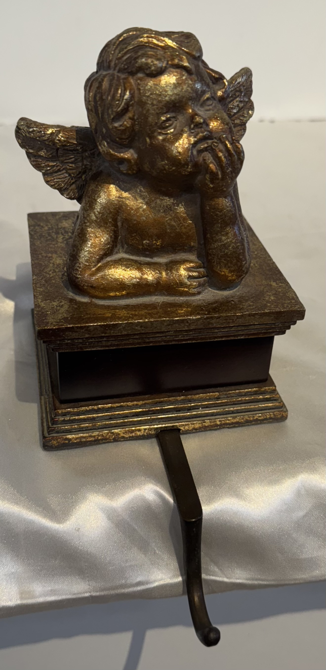 Decor XMas Seasonal Bombay 4x6.5H GldBlk Distressed Stocking Hold