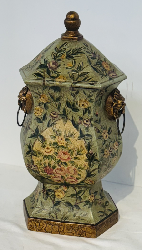 Decor Box 6x12.5H GrnGldRd Resin Ornate