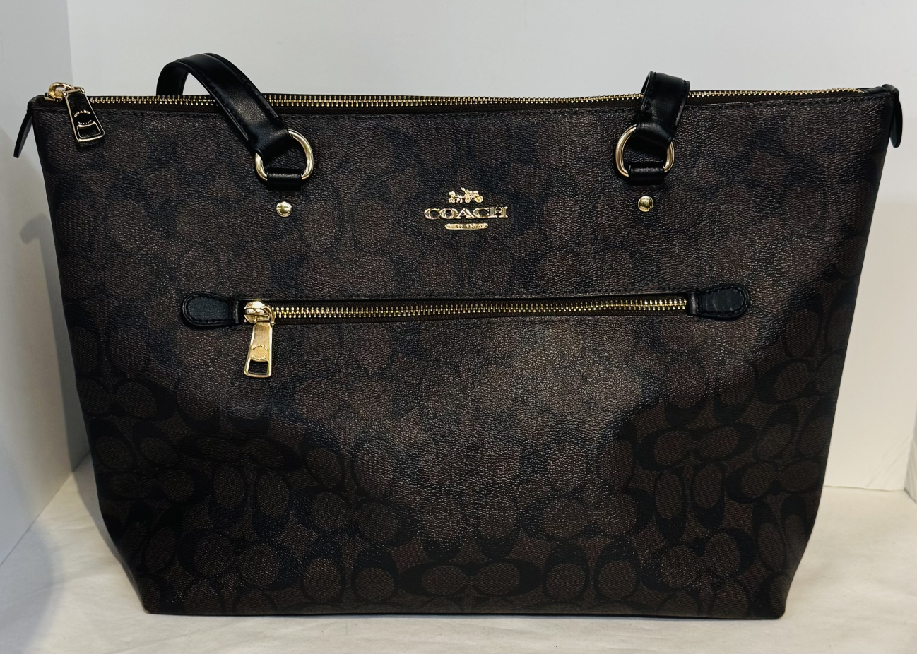 Boutique Handbag Coach 16x10H BrnBlk Leather Logo
