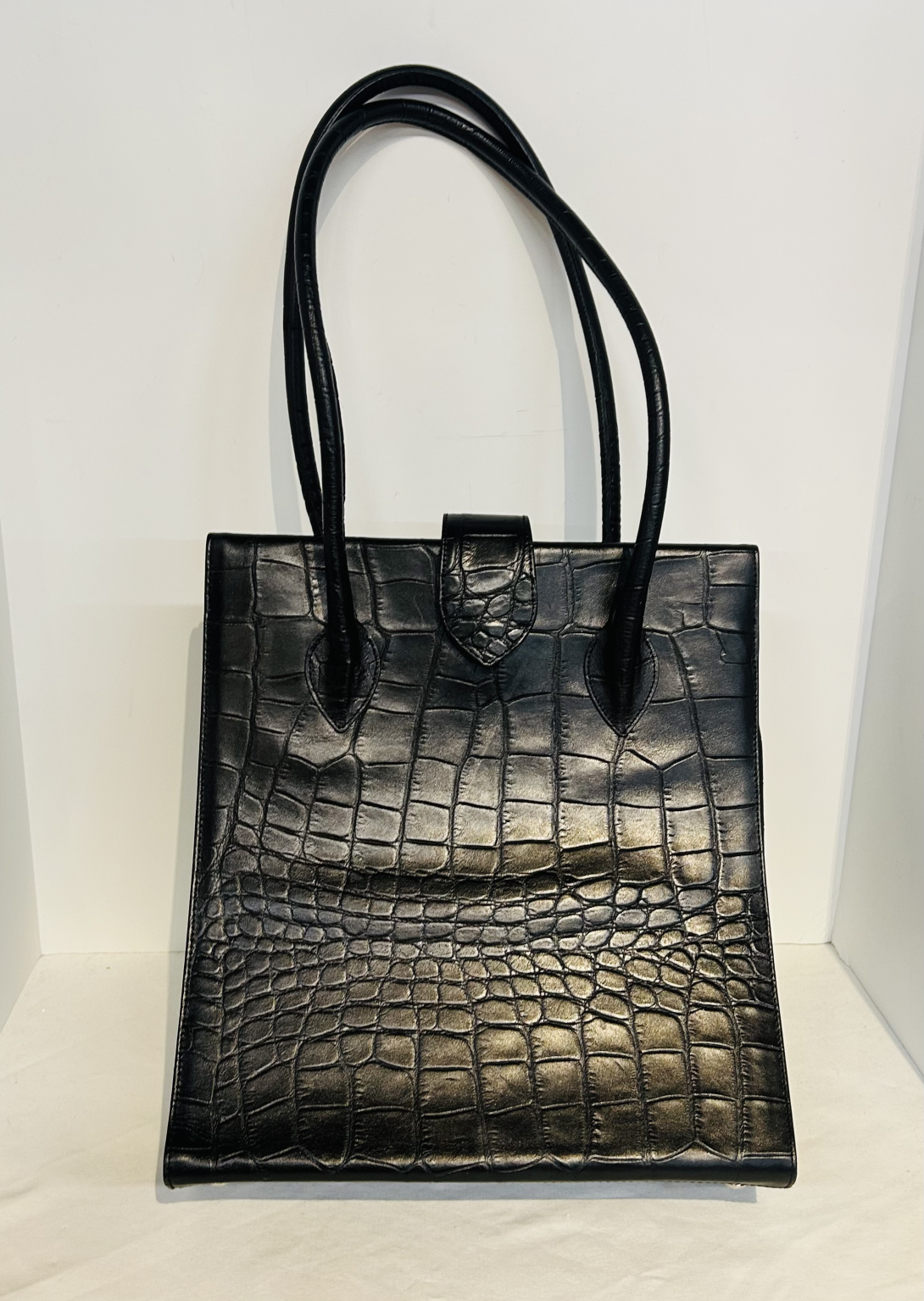Boutique Handbag Cole Haan 11x12H Black Leather Croc