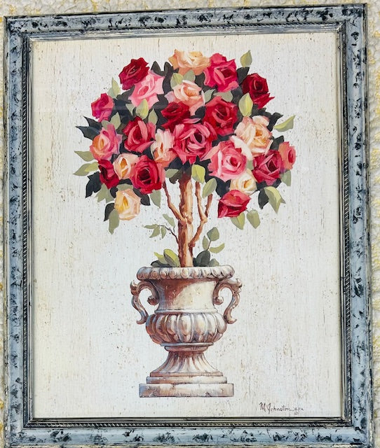 Print Rose Topiary In Pot 19x23H CrmGrRP