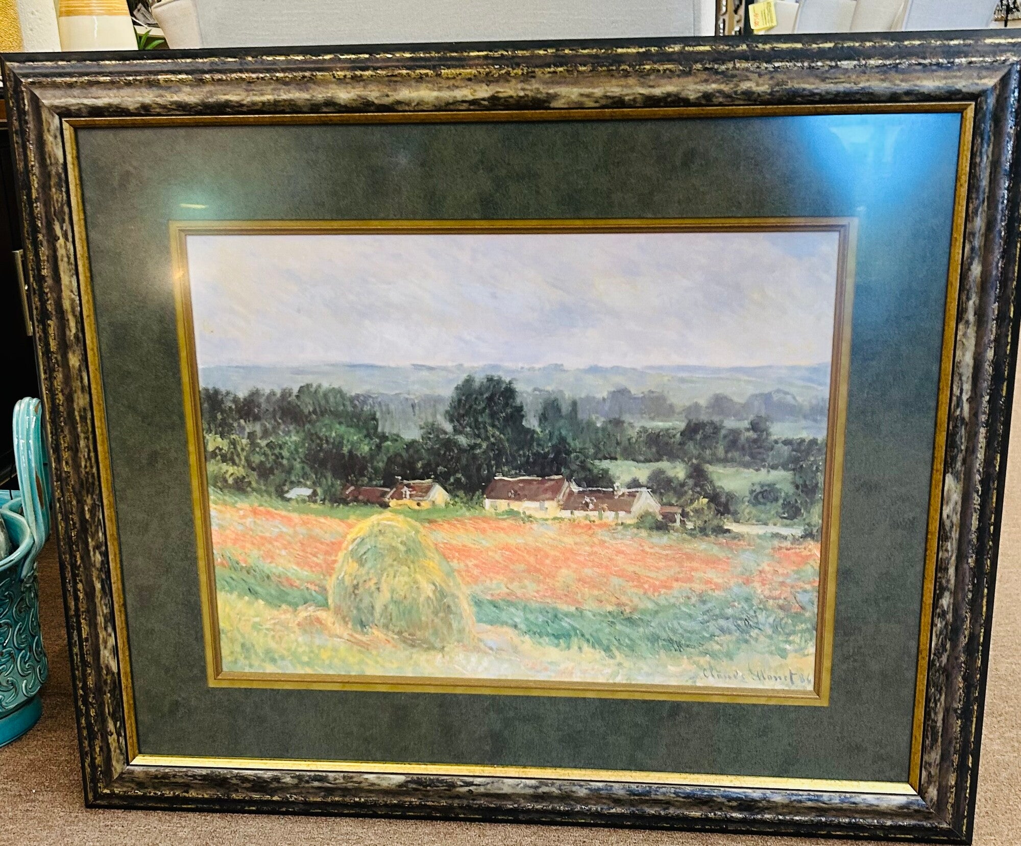 Print Monet Haystack Giverny 44x36H GrnOrgBl