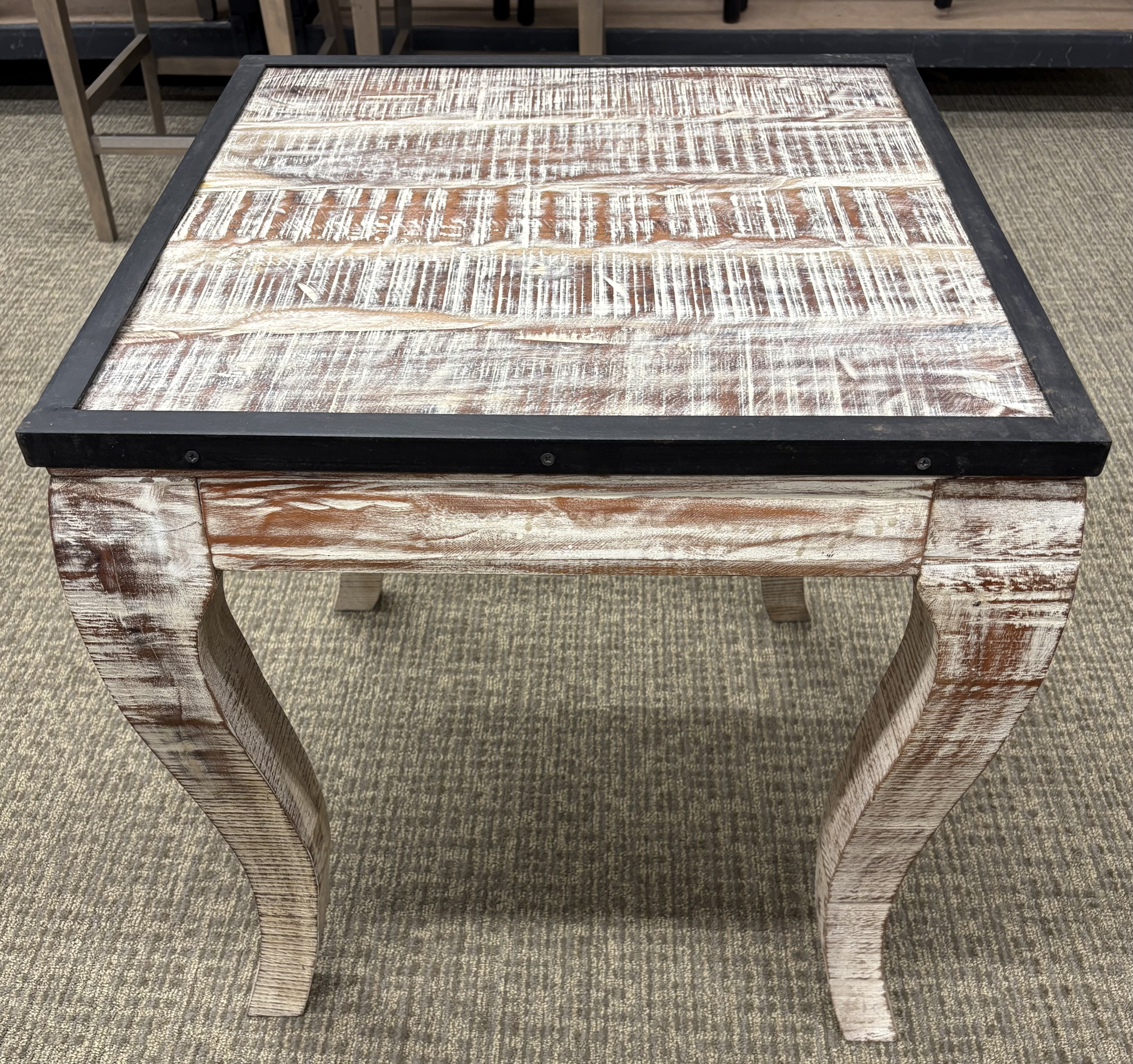 Furniture Accent Table Designer 25x25x26.5H TanCrmBlk Wood & Metal Distressed