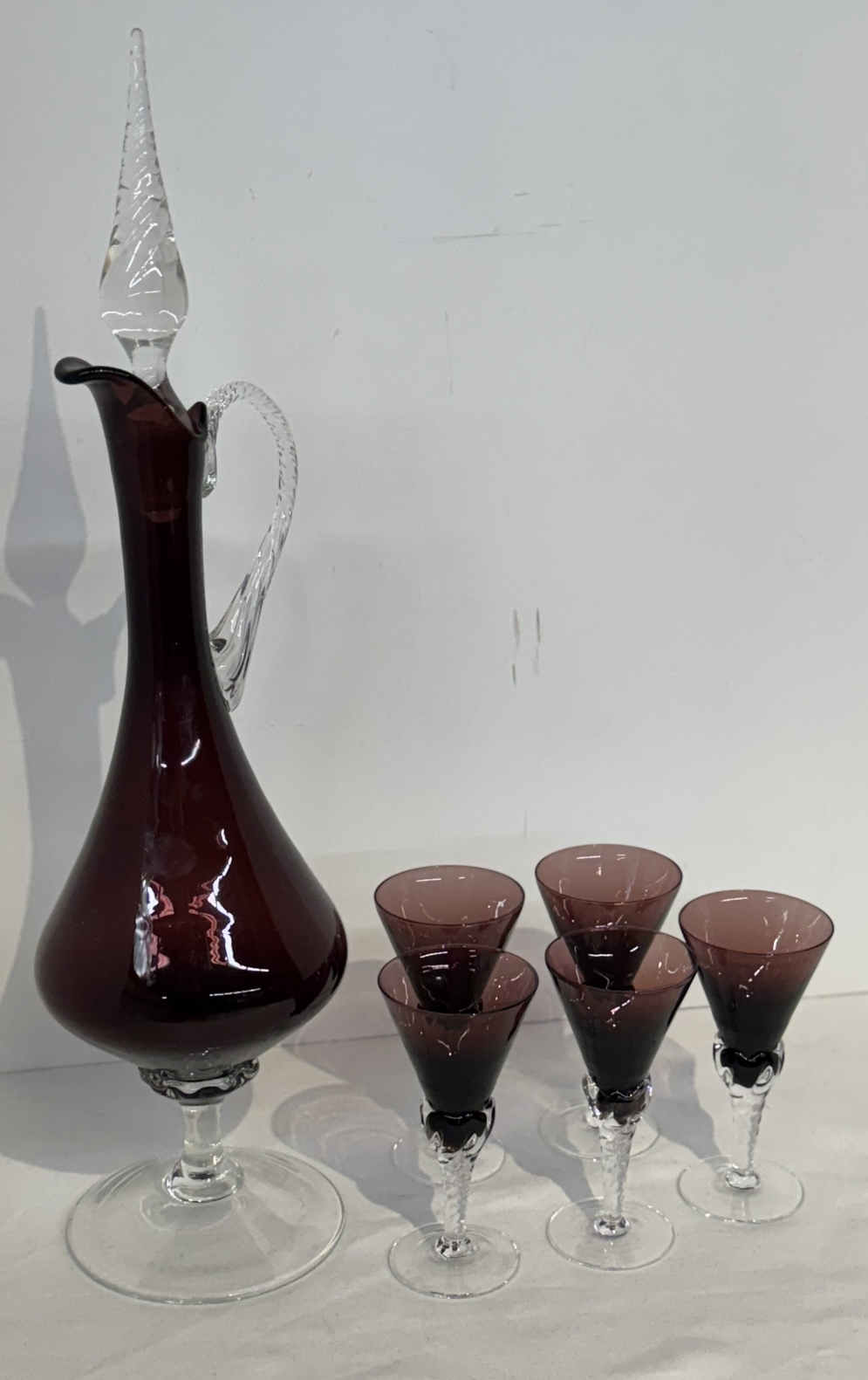 Decor Barware Empoli 5x17H PrpClr Glass Blown Decanter