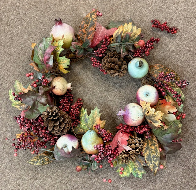 Decor Fall 22x20 BrnOrgRd Pinecone Wreath