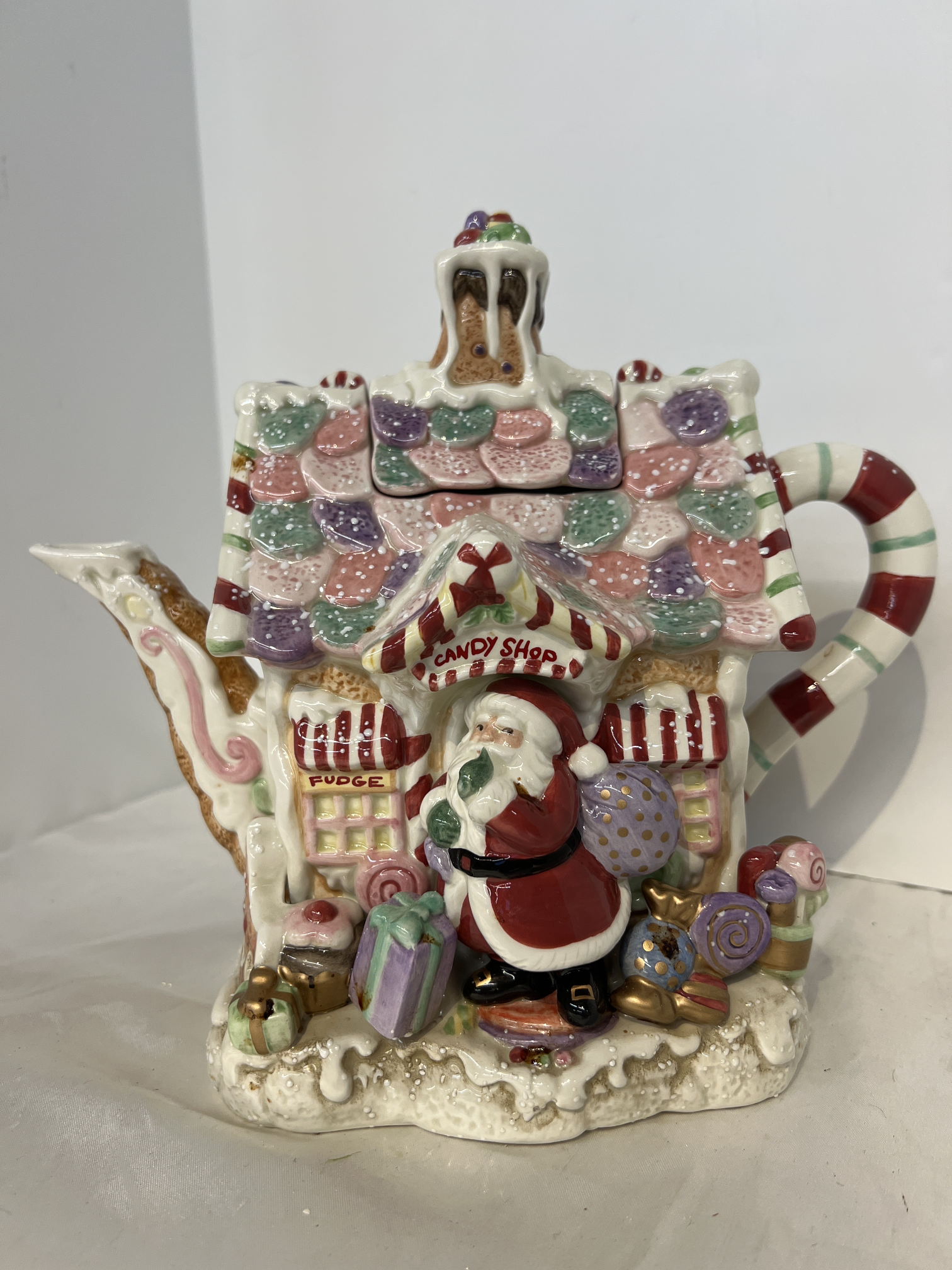 Decor XMas Seasonal Fitz & Floyd 10x9H WhPkBrn Ceramic Gingerbread