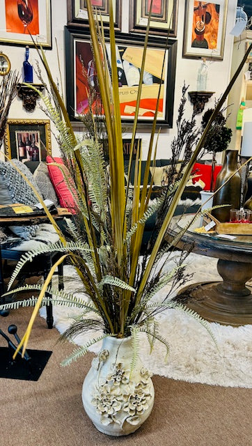 Luxury Bloom Vase+Ferns Cream Pottery Vase with Green Brown Ferns+Reeds Size: 31x53H Retail $275
