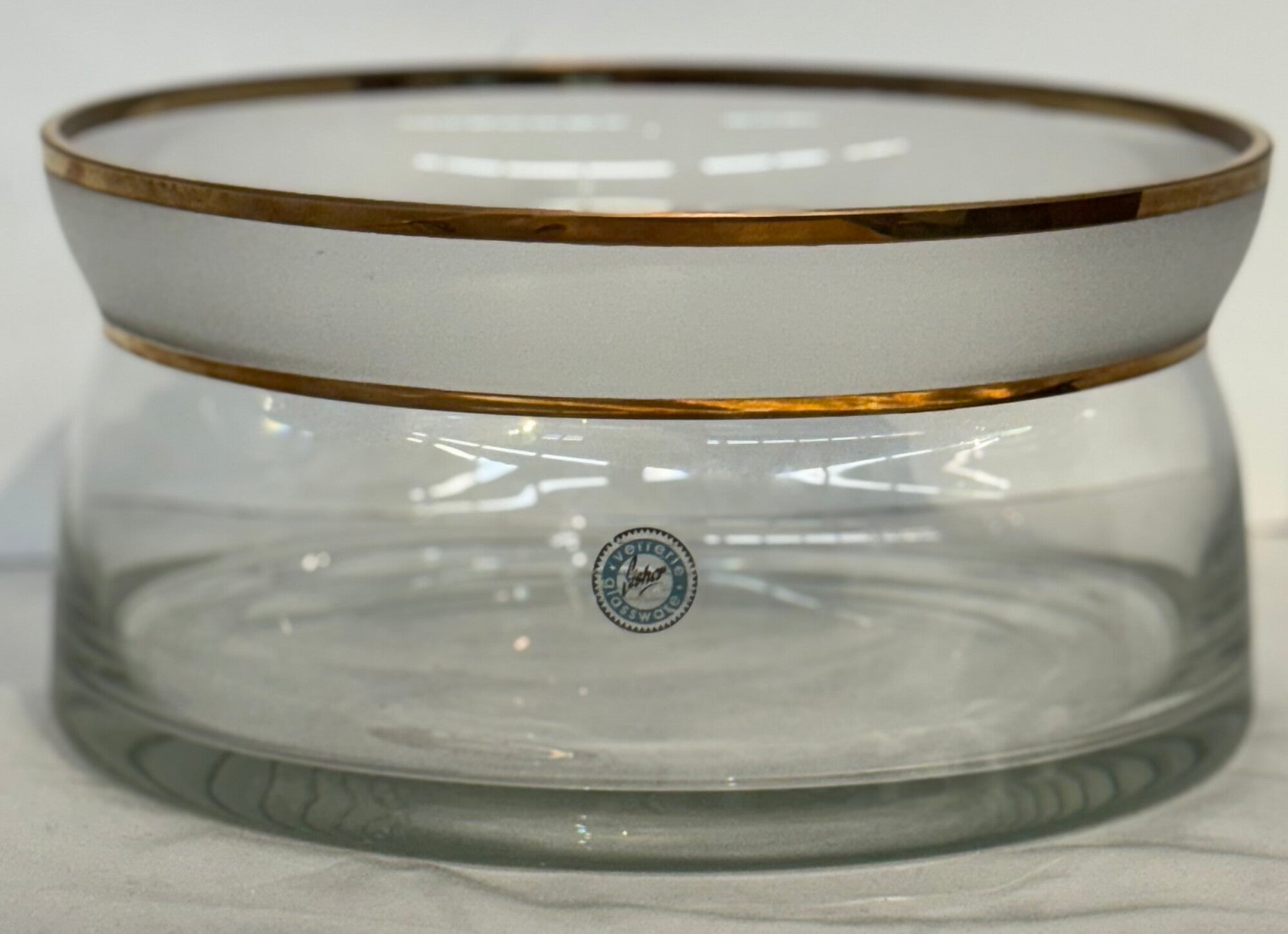 Glassware Frosted Gold Trim Bowl 9x4.5H ClrGld
