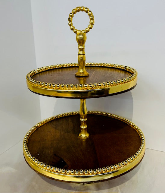 15516 Kitchenware WoodMetal DetailCake Tray 11x15H BrnGld