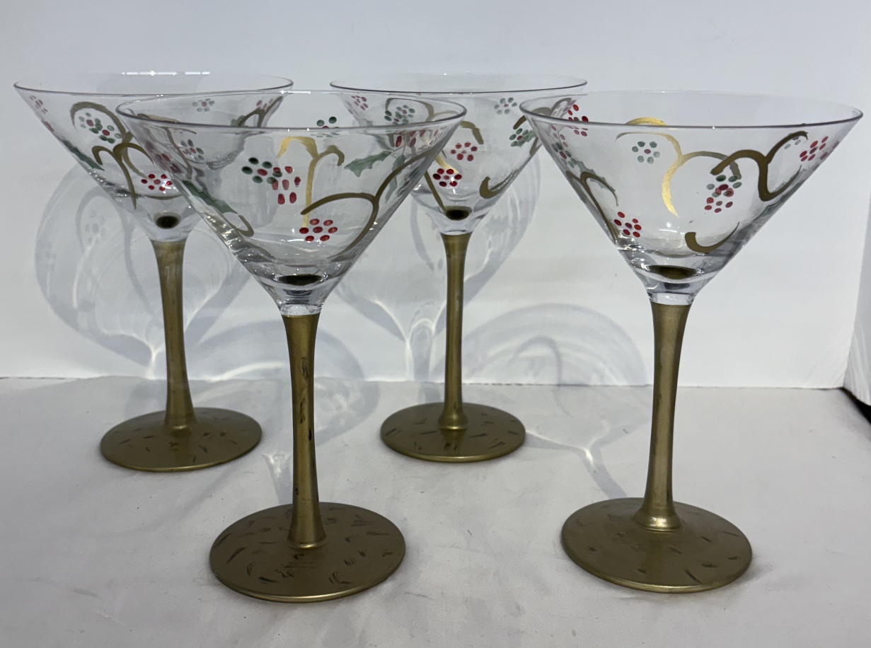Decor XMas Seasonal Pfaltzgraff 5x7.5H GldRdGrn Glass Painted