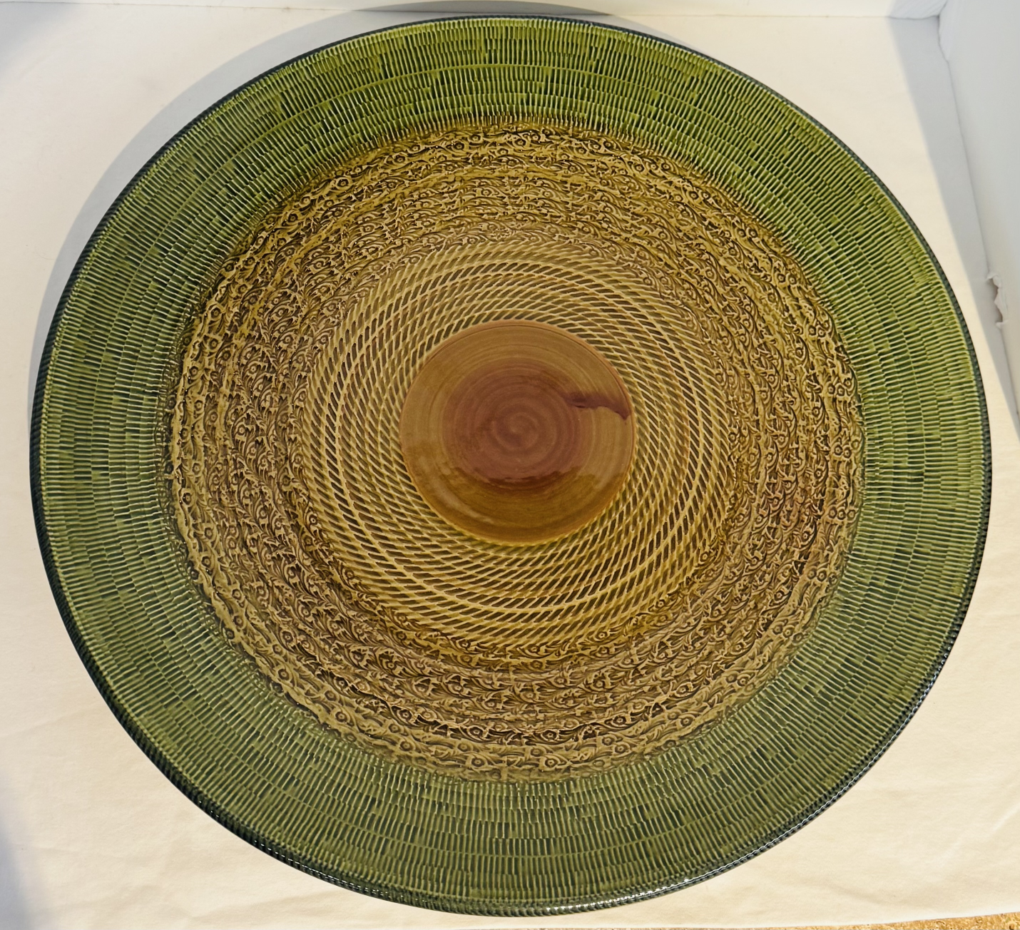 Decor Bowl Pier 1 16"Dia GrnBrnOrg Earthenware Italian