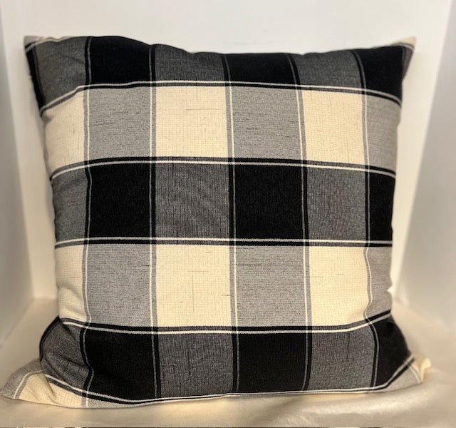 Decor Pillow 18x18H BlkWht Down Plaid
