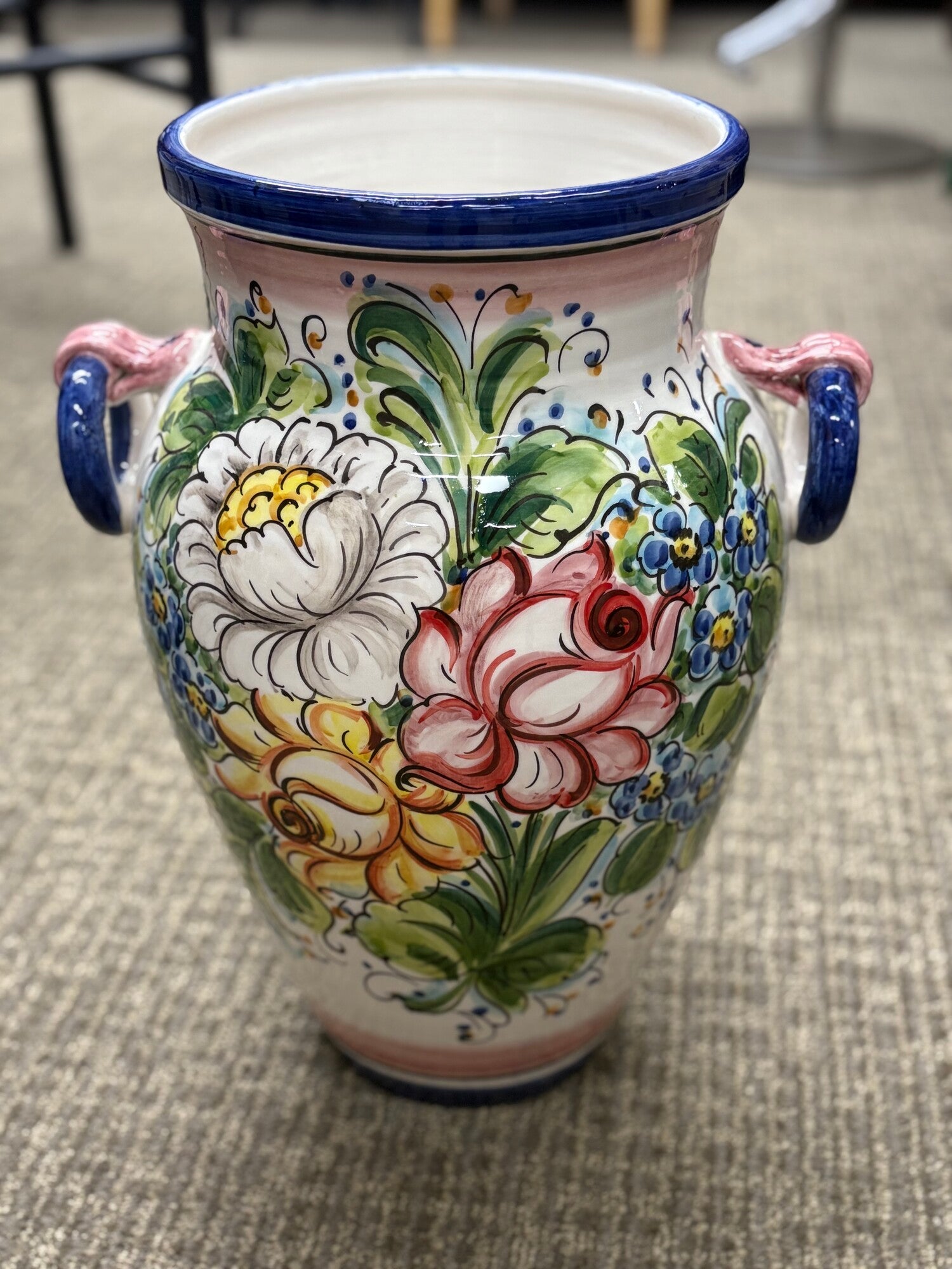 Decor Planter Italian 14x18H GrnPkBluW Floral