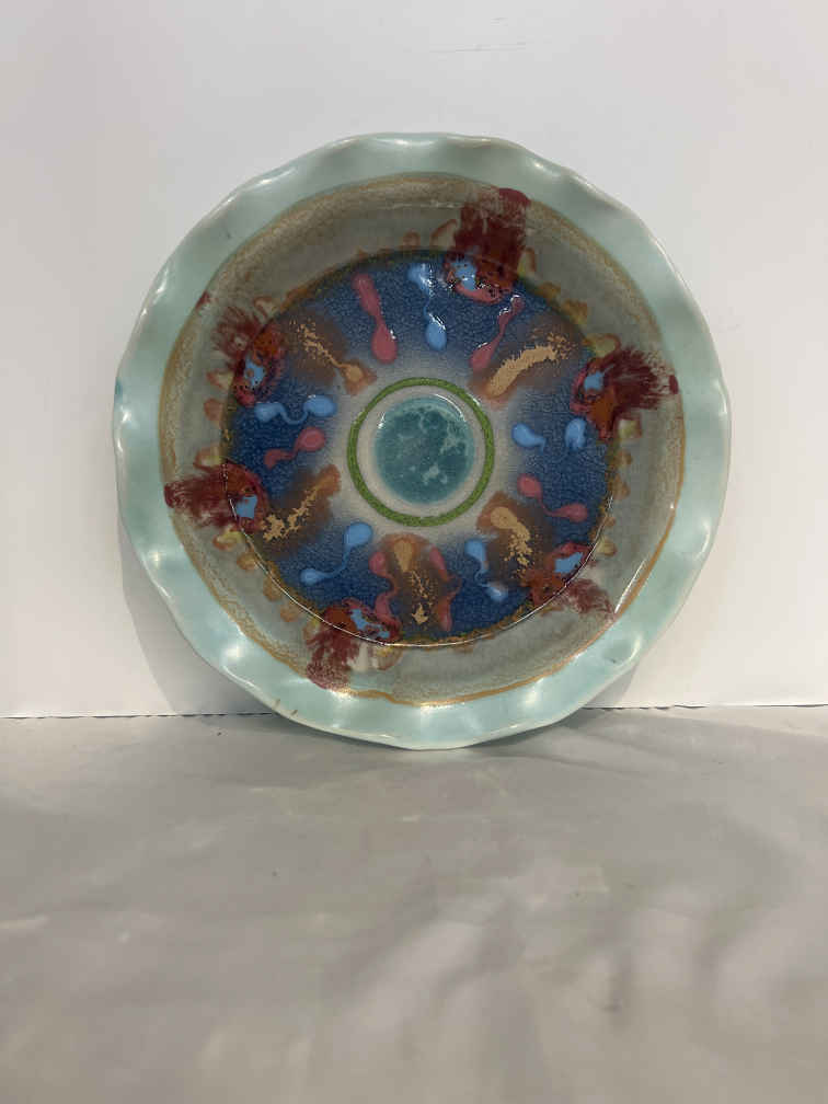 Decor Pottery 11x2H BluPkRd Pottery Abstract