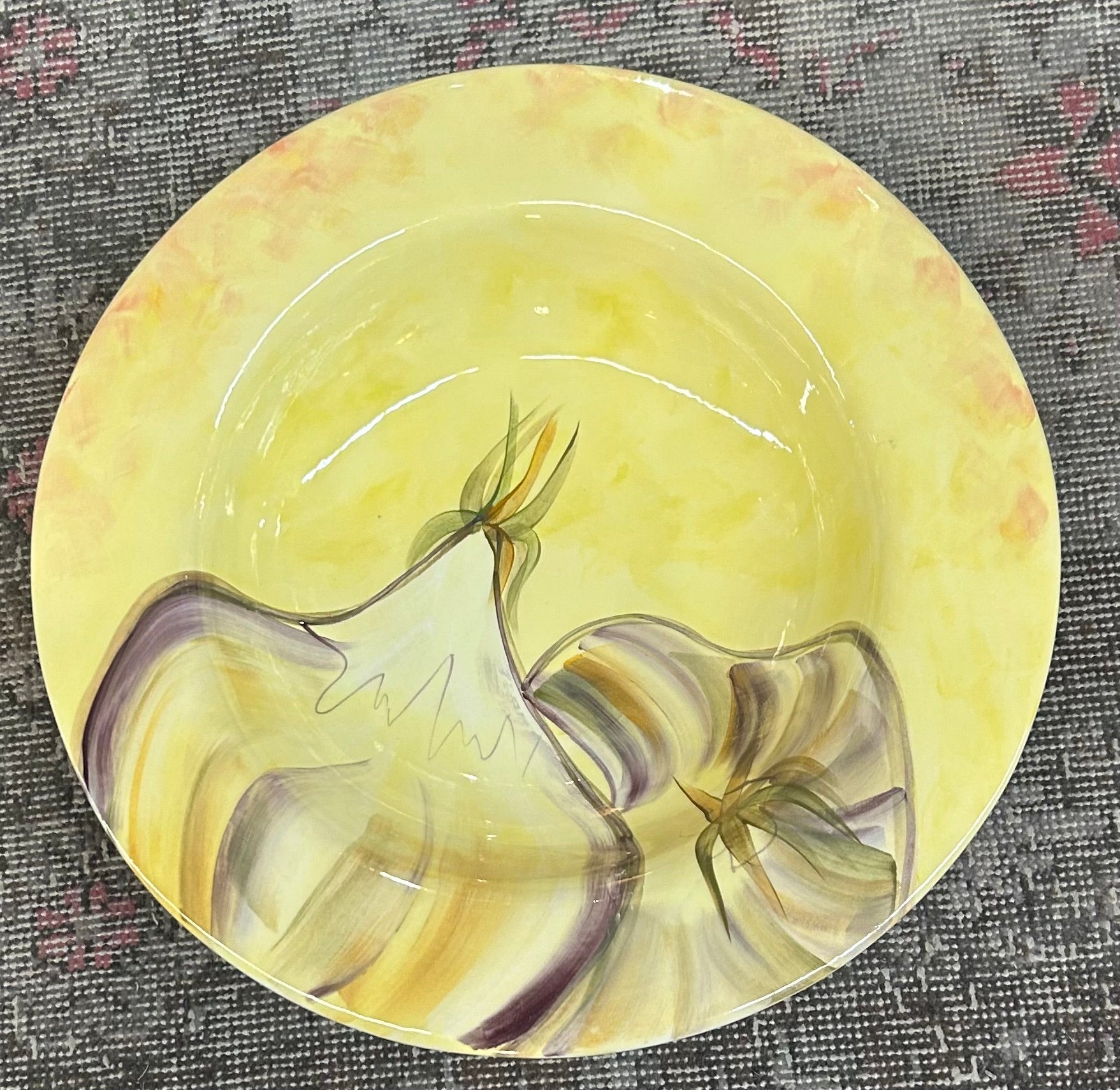 Decor Kitchenware Pottery Barn 15.5x3H YelGrnPur Ceramic Bowl