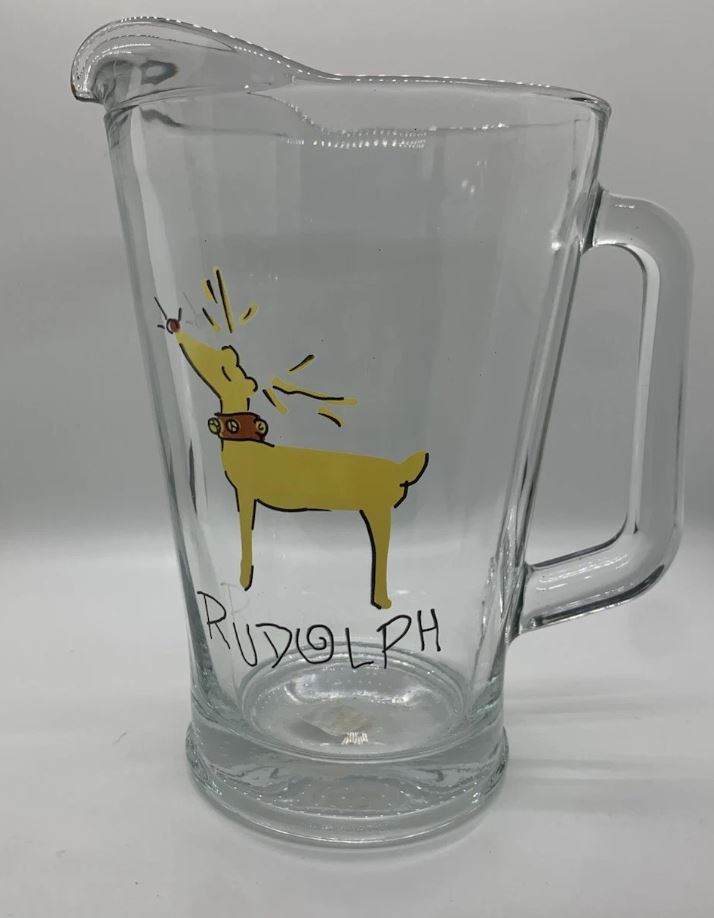 Decor XMas Seasonal Pottery Barn 7.5x9H Glass Rudolph