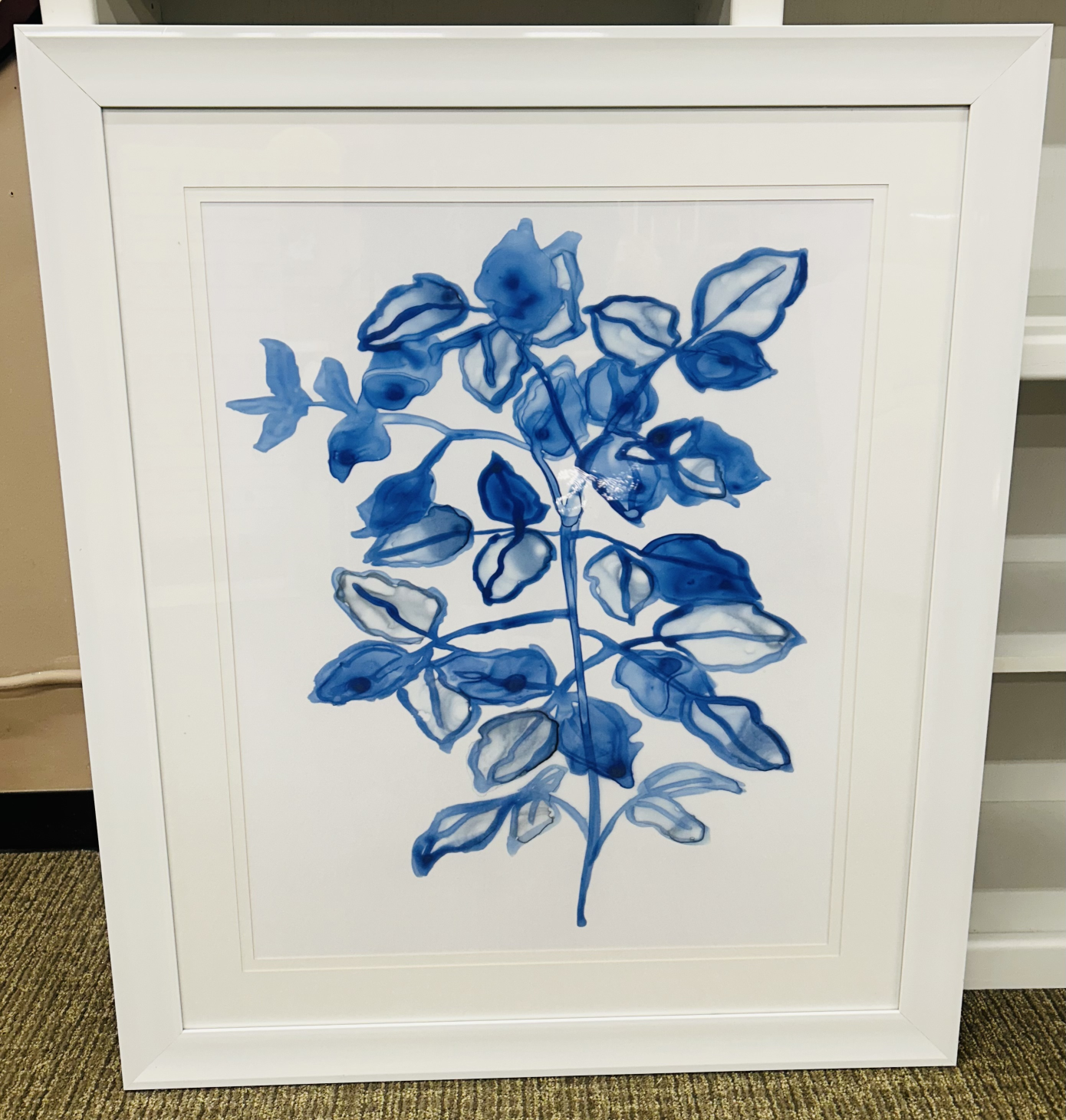 Wall Art Print 35x41H BluWh Matted Botanical