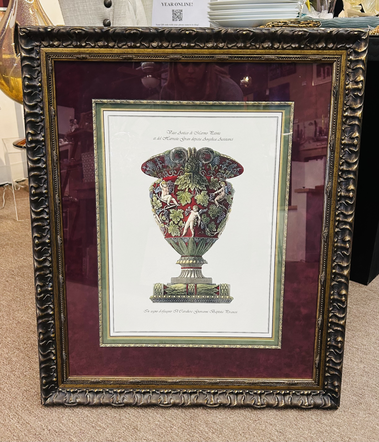 Wall Art Print 26x31H MarGrnCrmGld Wood Urn